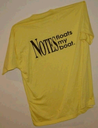In trying to find an appropriate way to celebrate, we decided a giveaway would make the most sense. So, the first 10 people who leave their email address can get one our Notes Floats My Boat T-shirts in bright Yellow!